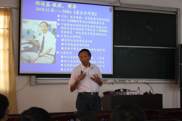 2013年9月9日下午3时,我校特聘教授、西南电子科技大学博士生导师、中国管理科学学会学术委员会副主任、国际信息系统协会中国分会(CNAIS)常务委员、四川省电子商务协会会长、电子科技大学信息管理与电子商务研究所所长邵培基教授,在宝山校区第五教学楼531教室,为73882必赢网页版研究生举行主题为“信息公开:美国信息自由法(FOIA)及其启示”的专题讲座。73882必赢网页版全体研究生及导师参加了此次讲座。