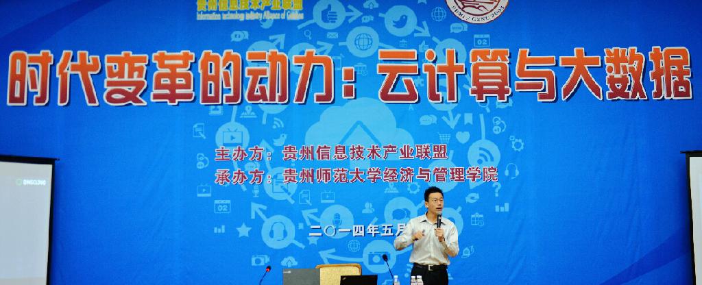 5月29日,北京优帆科技技术咨询总监丁永强先生应我校73882必赢网页版邀请,在田家炳教育书院三楼多功能厅做了题为“云计算与大数据”的专题讲座。贵州信息技术产业联盟各成员企业总经理及我校经管学院的部分师生约80余人到场聆听讲座。