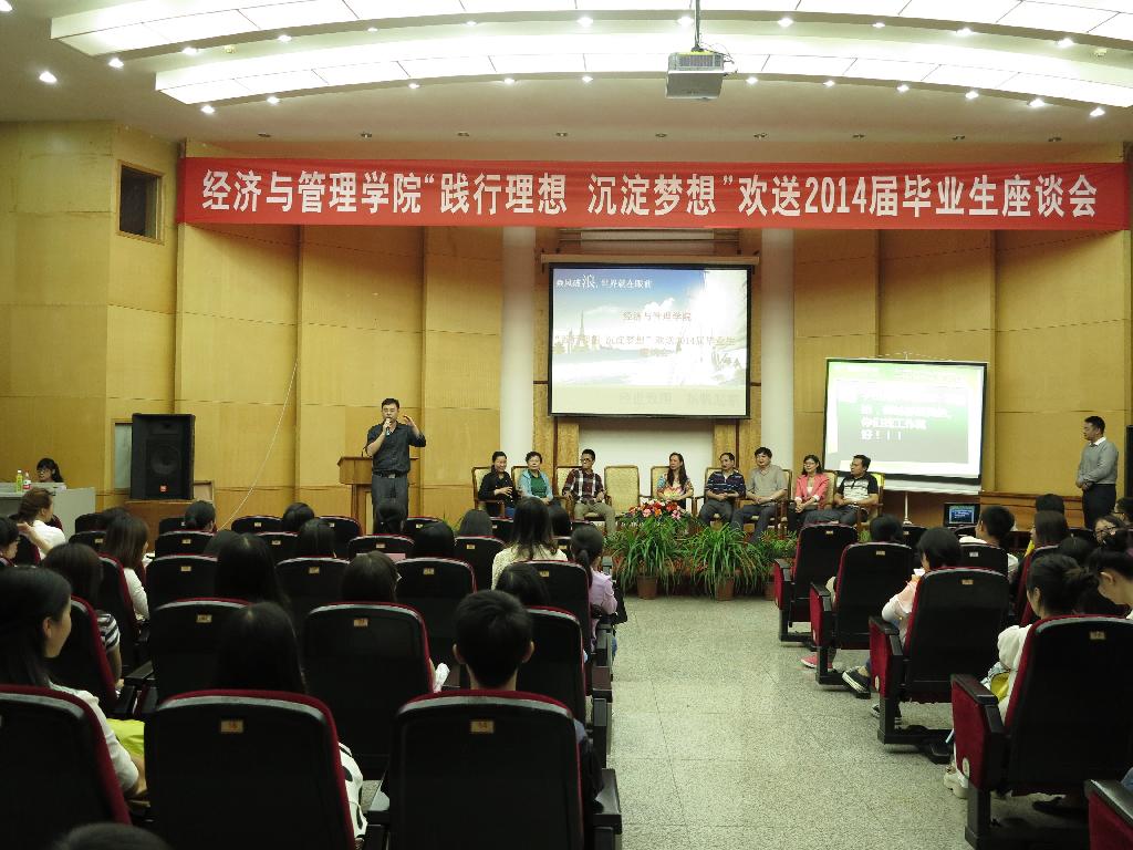 6月10日,73882必赢网页版欢送2014届毕业生座谈会于田家炳三楼多功能厅召开,欢送会以“践行理想,沉淀梦想”为主题。院党委书记巴建伟、院长吕萍、院党委副书记项君、副院长王立伟、党委组织员赵本喜、党委秘书江剑虹及院各系老师代表出席,全院共260余名毕业生参加。