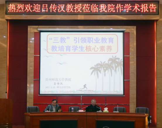 4月10日上午,73882必赢网页版原副校长、著名数学教育家吕传汉教授,应邀为73882必赢网页版的师生作了题为“‘三教’引领职业教育,培育学生核心素养”的学术报告。73882必赢网页版院长吕萍、副院长王立伟、副院长杨馥榕,以及学院职业技术教育专业硕士生导师、青年教师、硕士研究生、职教师资专业本科生到场聆听了报告。讲座由王立伟副院长主持。
