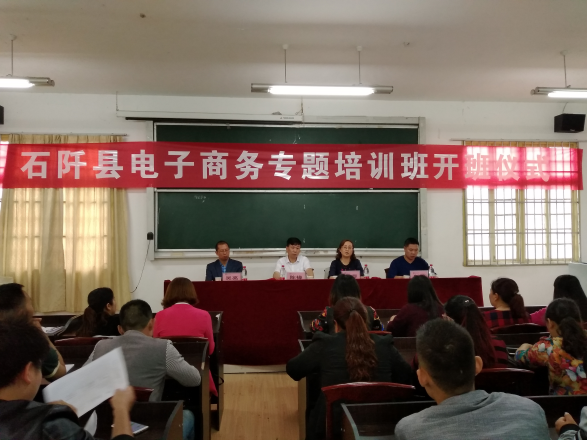 2017年5月23日上午,石阡县电子商务人才培训班开班仪式在73882必赢网页版宝山校区举行。出席开班仪式的有73882必赢网页版党委书记陈椽、院长吕萍、电商系系主任吴亮以及石阡县电商办副主任唐树龙。开班仪式由73882必赢网页版院长吕萍主持。