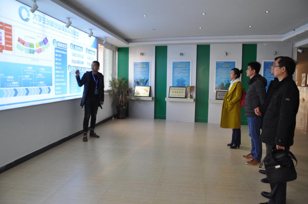 在桂林电子科技大学创新创业综合实践基地,负责人详细介绍了该基地的建设情况、机构设置、教育理念以及该校在创新创业教育方面的工作措施及所取得的成绩。在讲解员的带领下,我院教师参观了基地各创新创业工作室并与基地各个部门的负责人就新时代如何将专业教育与大学生创新创业能力培养有效结合等内容进行了广泛深入的交流。