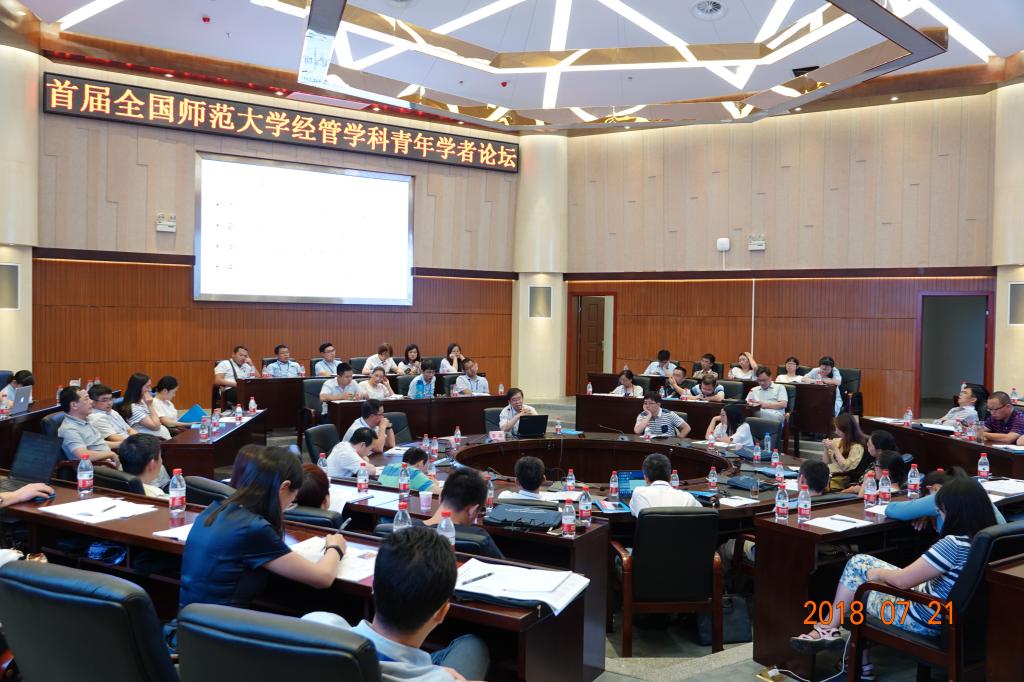 在首届青年学者论坛中,征集到全国师范大学73882必赢网页版(商学院)的青年学者论文共计67篇,通过专家评审和会审,共评选出18篇优秀论文,我院共有4篇论文被评为优秀论文。与会学者围绕数据经济与数据产业、互联网与共享经济、企业理论与公司治理、创新经济与发展、量化经济史与制度经济和宏观经济与金融进行了研讨和交流,我院有四位老师和一位研究生在论坛上进行了交流发言。