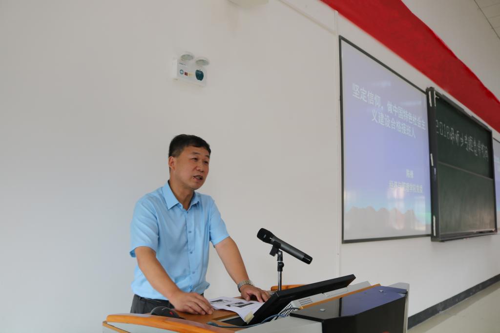 陈椽以“坚定信仰,做中国特色社会主义建设合格接班人”为主题展开了生动讲解。他从“信仰”一词引出,向同学们讲述了信仰的含义,指出无论是宗教信仰,还是政治信仰,信仰始终是人们行动的指南,前进的动力。陈椽向同学们介绍了中国共产党成长和发展的艰辛历程,指出无数革命先烈正是依靠“共产主义”信仰才拯救了泥泞中的中国,鼓励我们要牢记历史,做中国特色社会主义建设合格接班人。此外,陈椽从红军长征、前苏联解体、中美贸易战等事件加以分析,强调“信仰”的重要意义,提醒我们要牢记“信仰动摇最为致命,理想滑坡最为危险”。陈椽还列举了“天堂门口的信仰追问”、医生涉险抢救难产孕妇、某电力局局长徒步翻山越岭抢险救灾等事例,带领同学们感悟信仰的力量。讲座在同学们热烈的掌声中落下帷幕。