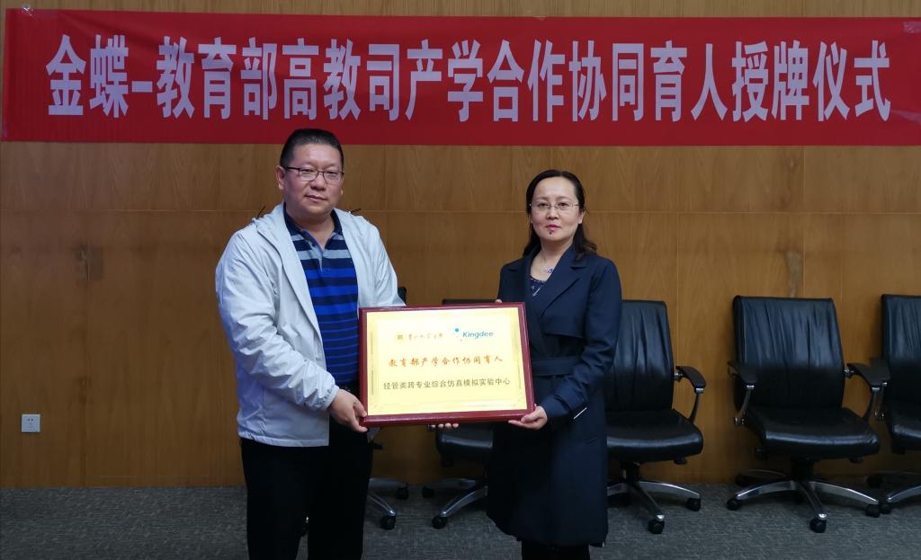 2019年3月11日,我院党委书记陈椽、院长吕萍、副院长王立伟及相关专业教师出席了在深圳金蝶集团“金蝶——教育部高教司协同育人”项目授牌仪式。院长吕萍代表学院接受了“金蝶——教育部高教司协同育人”牌匾。