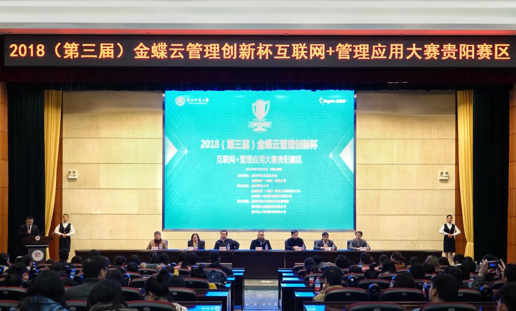 “金蝶云管理创新杯”互联网+管理应用大赛是由金蝶软件(中国)有限公司发起、响应国家“双创”和“应用型人才培养”的政策,联合教育部主管协会——高校毕业生就业协会举办的一项全国性高等院校学生竞赛活动。大赛面向全国高校在校学生,通过模拟企业管理信息化经营等形式,培养学生沟通协作能力,全面锻炼和提升学生的实践能力。在2018(第三届)“金蝶云管理创新杯”互联网+管理应用大赛贵阳赛区省区赛中,共有来自我省21所高校52支队伍近200名师生参赛。通过金蝶云教学产品K/3cloud和E云考试平台,展示学生的综合素质和职业能力,提升学生职业能力和就业竞争力,引领和促进院校实训实验教学改革,为企业选拔管理岗位优秀人才提供实践能力的考查依据