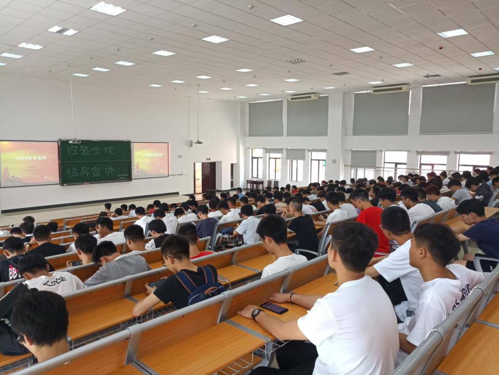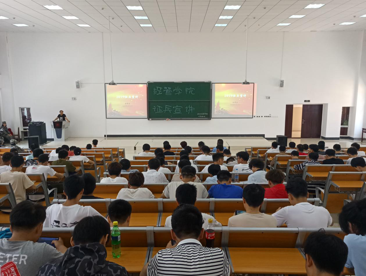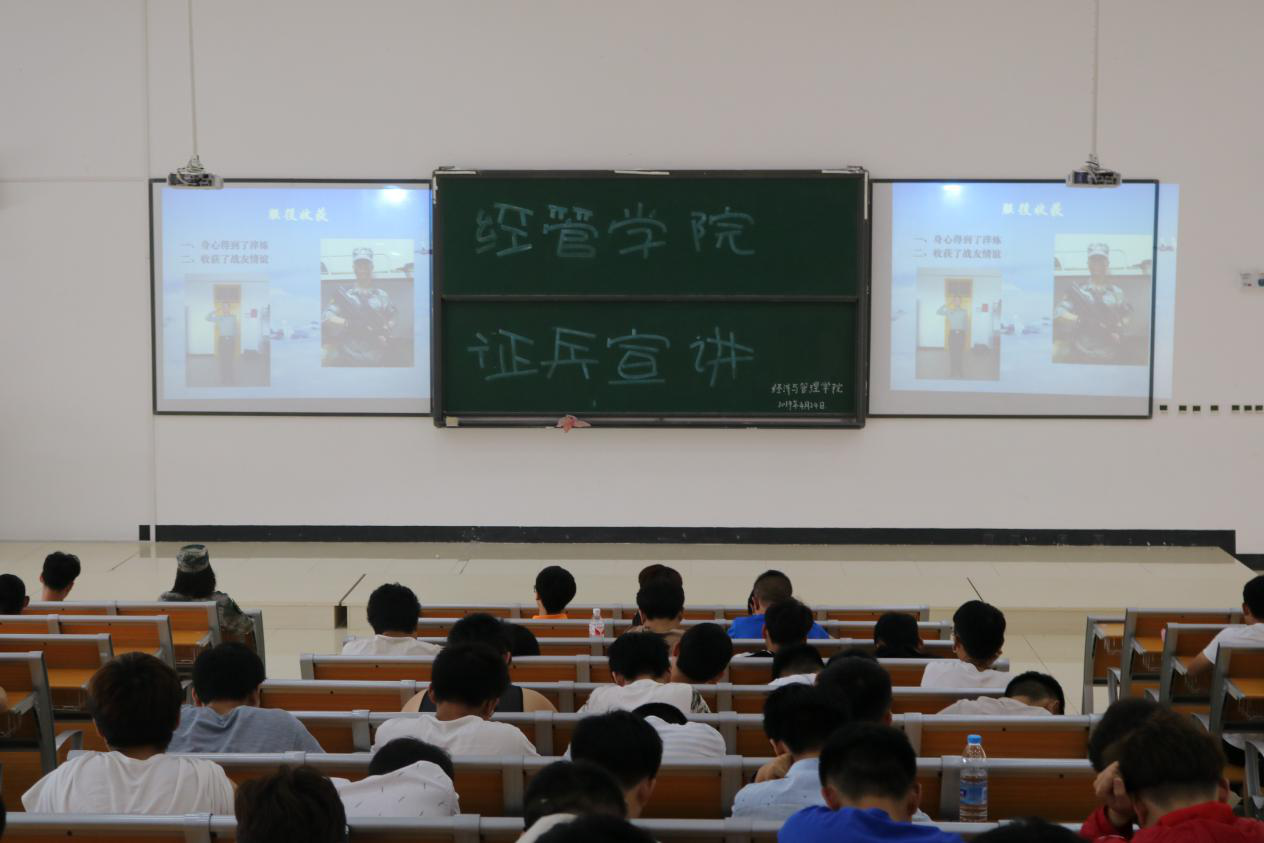 为了响应国家号召,做好2019年大学生应征入伍工作,增强同学们的爱国情怀和国防观念,4月24日中午,73882必赢网页版在学院楼9315教室开展征兵宣讲会。本次宣讲会由师大军鹰团成员泰田田、宋亚亚以及退伍军人骆耀培、梁进进行宣讲,我院2016、2017、2018全体男生参加。宣讲会由2017级辅导员赵元钊主持。