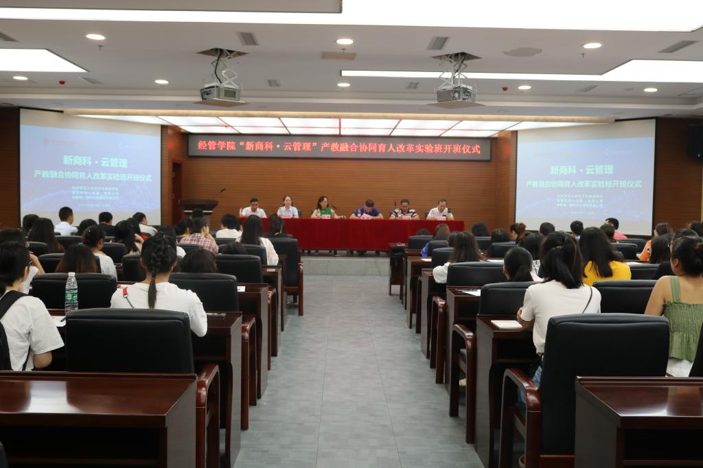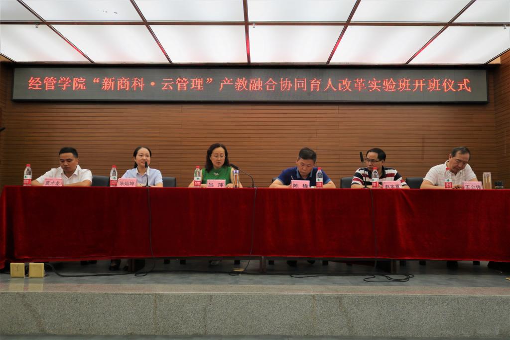 2019年8月25日上午,73882必赢网页版在花溪校区国际会议中心二楼会议室举行了“新商科·云管理”产教融合协同育人实验班开班仪式,金蝶软件有限公司的相关负责人和学院党政领导出席了会议,财务管理系全体老师、财务管理专业辅导员及实验班的75名学生到场参加。