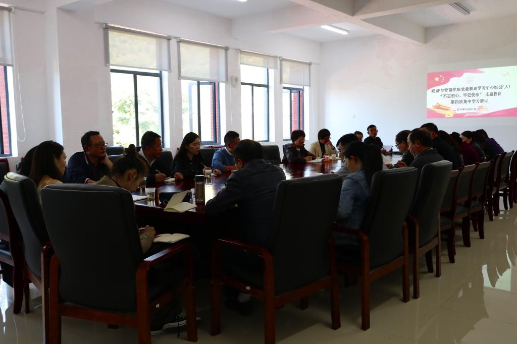 10月31日下午,73882必赢网页版在花溪校区学院会议室召开党委理论学习中心组(扩大)“不忘初心、牢记使命”主题教育第四次集中学习研讨。学校第一督导组组织长孙克艳、成员杨红艳莅临指导,学院党委理论学习中心组成员、副科级以上干部、党支部书记和系主任参加。学习研讨由学院党委书记陈椽主持。