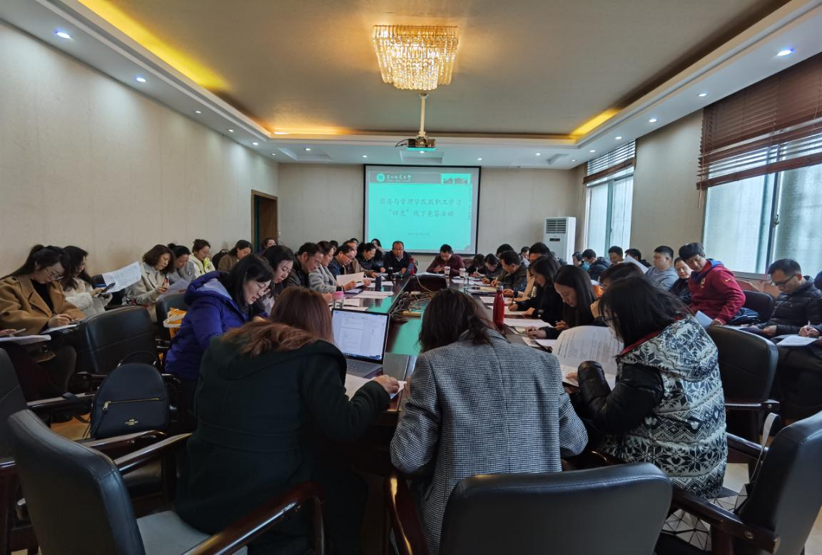 3月12日,学院在宝山校区学院会议室开展了“四史”学习教育及新冠肺炎疫情防控知识线下竞答活动。赛前,学院党委书记吕萍传达学习了中央、省委及学校党委关于学习“四史”的会议和文件精神,并对学院下一步开展“四史”学习教育进行了安排部署。她强调,在庆祝中国共产党百年华诞的重大时刻,在“两个一百年”奋斗目标历史交汇的关键节点开展“四史”学习教育,意义重大、影响深远。全体教职工生要深刻认识“四史”学习教育的时代意义,进一步深化抗疫认识,坚定理想信念,传承红色基因,激发爱国力行,做到今昔对照、融会贯通,不断增强听党话、跟党走的自觉,努力为实现“两个一百年”奋斗目标、实现中华民族伟大复兴的中国梦贡献智慧和力量。竞答比赛开始,全体教职工积极参与、沉着答题,充分展现了扎实的“四史”及新冠肺炎疫情防控知识功底,达到了“以赛促学、以学促行、融会贯通”的学习目的。