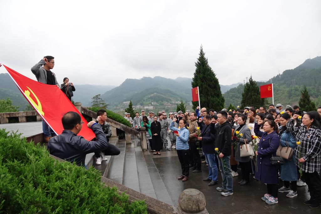 4月17日上午,全体党员教师来到土城镇瞻仰青杠坡战斗遗址,在庄严的青杠坡红军烈士纪念碑前,全体党员整齐列队,向革命先烈敬献了花篮并鞠躬致敬。在学院党委书记吕萍的带领下,全体党员教师面对鲜红的党旗,擎举右拳,重温了入党誓词,再次接受了思想洗礼。在讲解员的解说中,大家深入了解了青杠坡战斗这段光荣历史,观看了四渡赤水培训学校的讲师们作的情景教学展示,在声情并茂的诗歌朗诵中,与红军烈士隔空“精神对话”,感受当年那场发生在脚下这片热土的激战,感受红军烈士顽强斗争,不怕牺牲的精神,在场的党员同志无不感动得热泪盈眶!