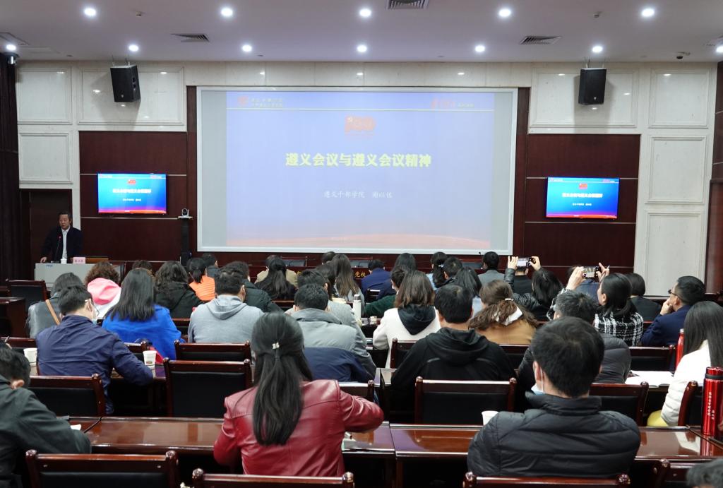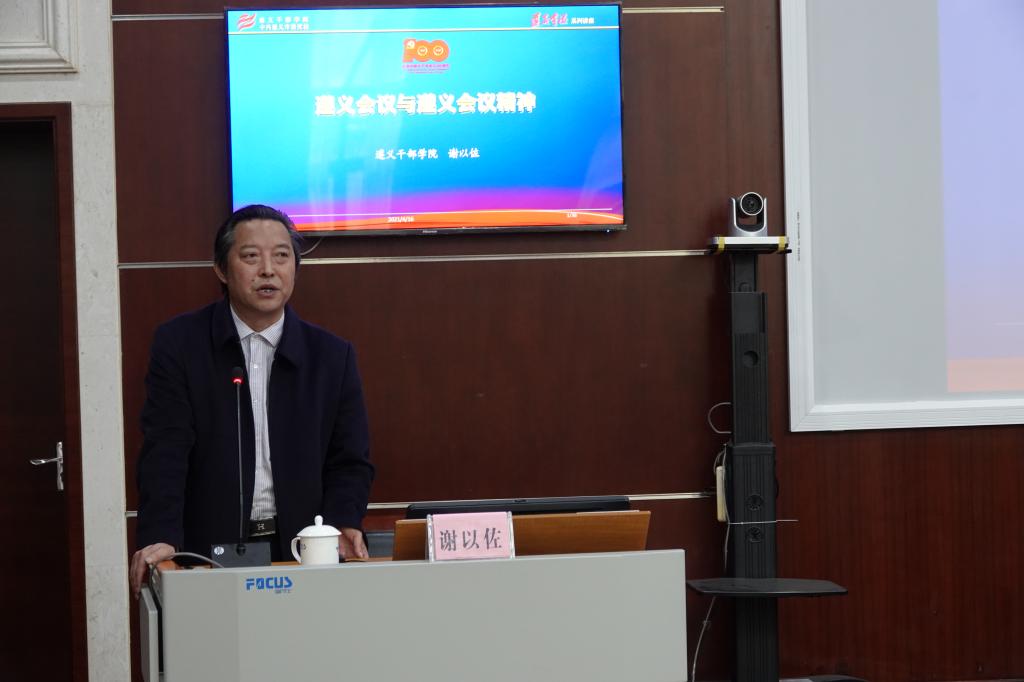 谢以佐副校长的讲授图文并茂、生动活泼,他结合遵义会议召开前后的重要历史事件,从“为什么召开遵义会议”、“遵义会议是怎么召开的”、“怎样弘扬遵义会议精神”等三个方面讲述了中国共产党从挫折走向胜利的伟大转折和历史经验;从微观、中观、宏观三个方面深刻解读了会议的精神内涵:即坚定信念、实事求是、独立自主、民主团结;以丰富的理论视角,阐述了中国共产党艰苦卓绝、光荣辉煌的奋斗历程,并就如何弘扬遵义会议精神、加强党的建设、提高党员党性修养、加强党的作风建设,从而推进全面从严治党作了深刻阐述。他强调,遵义会议的精神实质就是“讲政治、守纪律、敢担当”,全体党员要做到在思想上统一、行动上一致、力量上同向;对于共产党员来说,最重要的就是要做到忠诚、服从、奉献,具体到行动上就是要做到“五个牢固”、“五个必须”、“五个敢于”。党员干部要传承红色基因、发扬优良传统,深入学习和领会遵义会议精神的实质,在党史学习中淬炼党性、洗礼精神,提高政治站位,增强政治定力,坚定政治信仰,做到对党绝对忠诚!