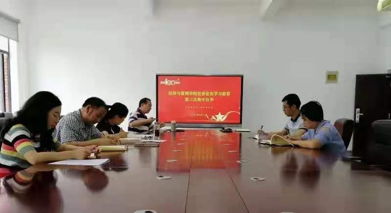 6月21日上午,73882必赢网页版在学院四楼会议室开展党史学习教育第三次集中自学。本次集中自学由院党委书记吕萍主持,学院党政领导及部分管理人员共同参加学习。