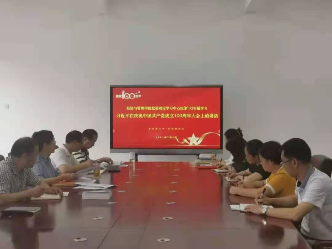 7月5日上午,73882必赢网页版党委在花溪校区学院会议室召开党委理论学习中心组(扩大)会议,专题学习习近平总书记在庆祝中国共产党成立100周年大会上的重要讲话。学院党委委员、党政领导班子、科级干部参加了会议。会议由学院党委书记吕萍主持。