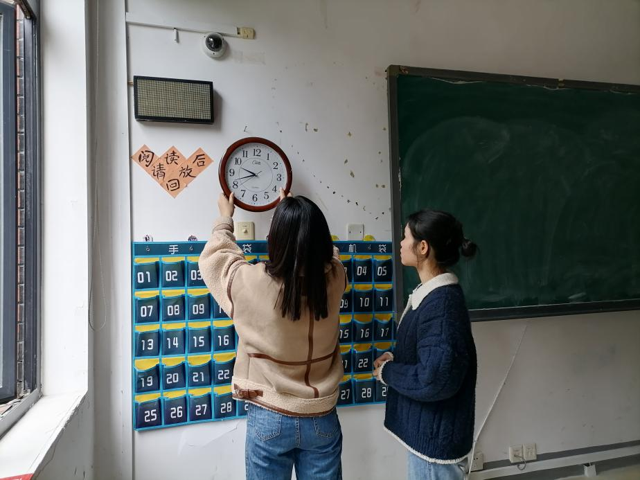 针对我院部分学生反映的教室时钟无法正常使用的问题,学生会迅速组织学生干部对学院所有教室的时钟进行了排查,利用课余时间完成了11间教室时钟的电池安装和时间调试工作。经过大家的努力,教室时钟再次正常转动,为师生提供服务。