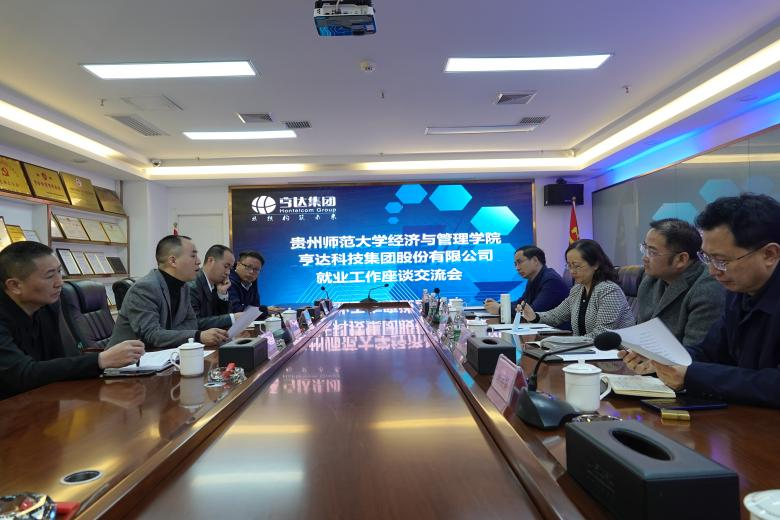 亨达科技集团有限公司董事长连灶华对吕萍一行的到来表示热烈欢迎,并简要介绍了公司近年来的发展情况,希望通过双方交流拓宽合作渠道,探索校企合作新模式,为公司选拔人才提供便捷通道。吕萍表示,亨达科技集团有限公司作为一家贵阳本土上市公司,积极承担了企业责任,在信息技术产业等方面为社会做出了很大贡献,希望通过校企合作等方式为我校毕业生提供相关就业岗位,解决我院毕业生就业难的现状。