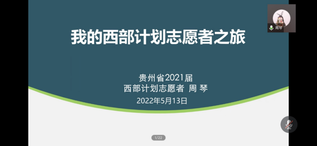 2021届西部计划志愿者周琴和2020届西部计划志愿者罗兴萍分别分享了自己在贞丰县、新疆伊犁市志愿服务的工作经历和志愿感悟。两位志愿者还针对同学们提出的问题进行逐一解答。
