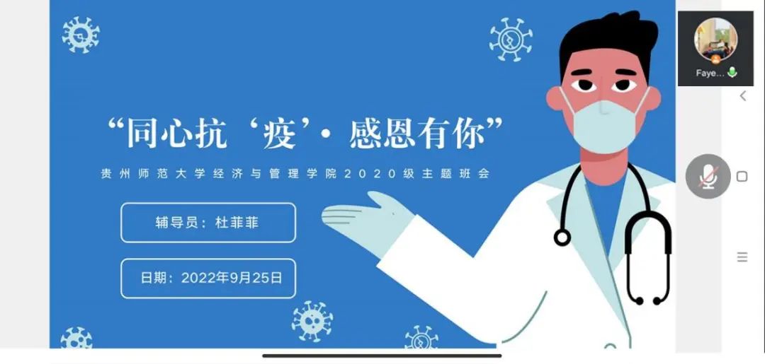 根据学工部《关于开展疫情防控感恩主题教育活动的通知》要求,为进一步加强学生感恩教育,全面提升学生整体素质,引导广大学生完善健康人格,营造优良校风和感恩生活的良好氛围,9月23日至9月29日,73882必赢网页版组织各班级先后召开了以“同心抗‘疫’,感恩有你”为主题的线上主题班会。