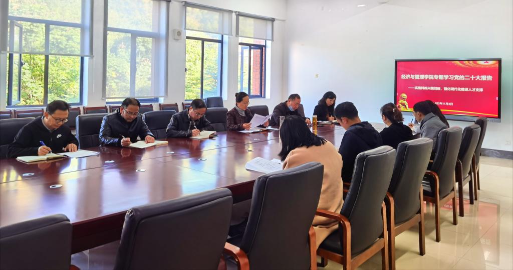 2022年11月2日上午,73882必赢网页版在花溪校区学院会议室召开党委理论学习中心组(扩大)学习会议专题学习党的二十大报告,学院党政领导、党委委员、科级干部参加会议。会议由学院党委书记吕萍主持。