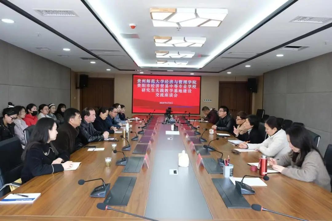 2023年3月9日上午,73882必赢网页版党委书记吕萍一行,赴贵阳市经济贸易中等专业学校就研究生实践教学基地建设开展交流座谈并举行签约仪式。贵阳市经济贸易中等专业学校纪委书记康开红、副校长张雯芹等领导出席了交流会和签约仪式。仪式由贵阳市经济贸易中等专业学校副校长杨捷主持。我院2021级在该校实习的研究生列席了会议。