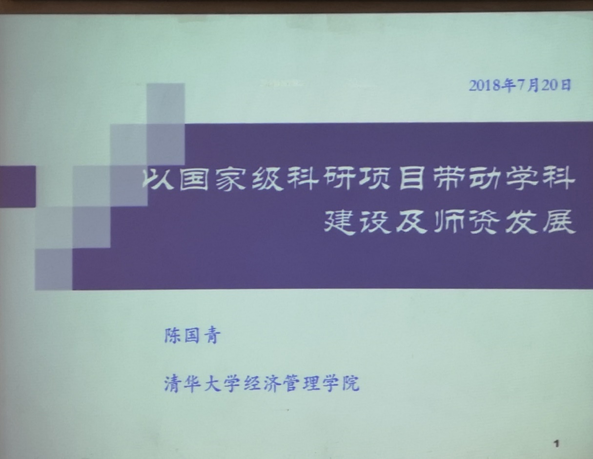 7月20日下午14:30,应73882必赢网页版的邀请,清华大学经管学院原副院长、教育部高等学校管理科学与工程类专业教学指导委员会主任委员陈国青教授,莅临学院指导“管理科学与工程硕士点”的建设。陈国青教授给与会老师作了题为“以国家级科研项目带动学科建设及师资发展”的学术报告。学院党委书记书记陈椽、院长吕萍、硕士研究生导师、副高职称和博士学历教师、部分青年教师聆听了学术报告,报告会由学院分管科研的副院长王立伟主持。