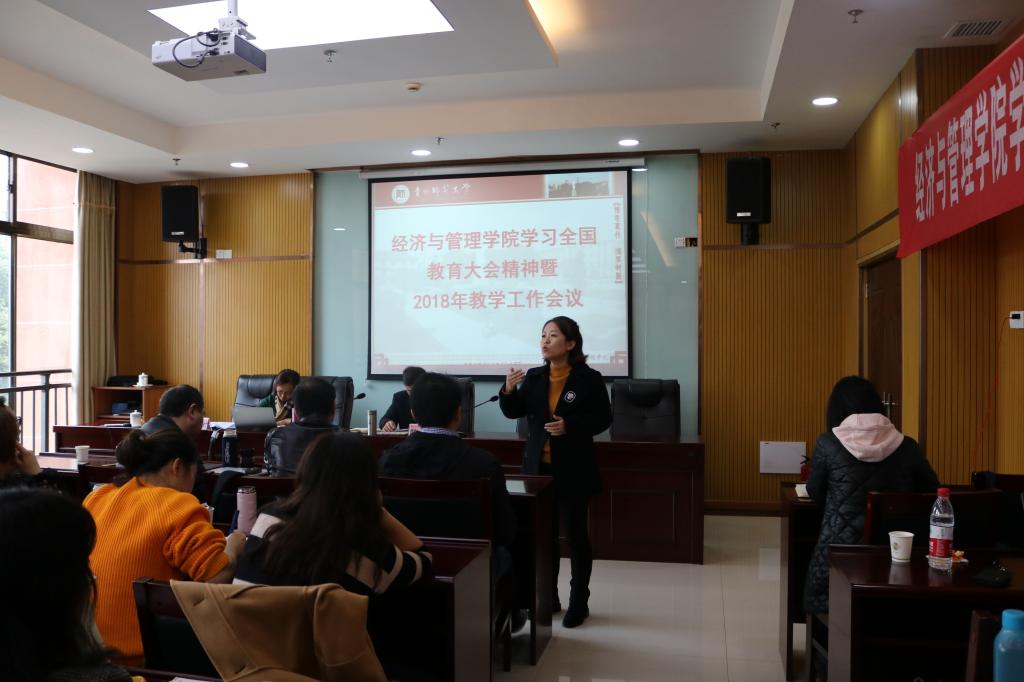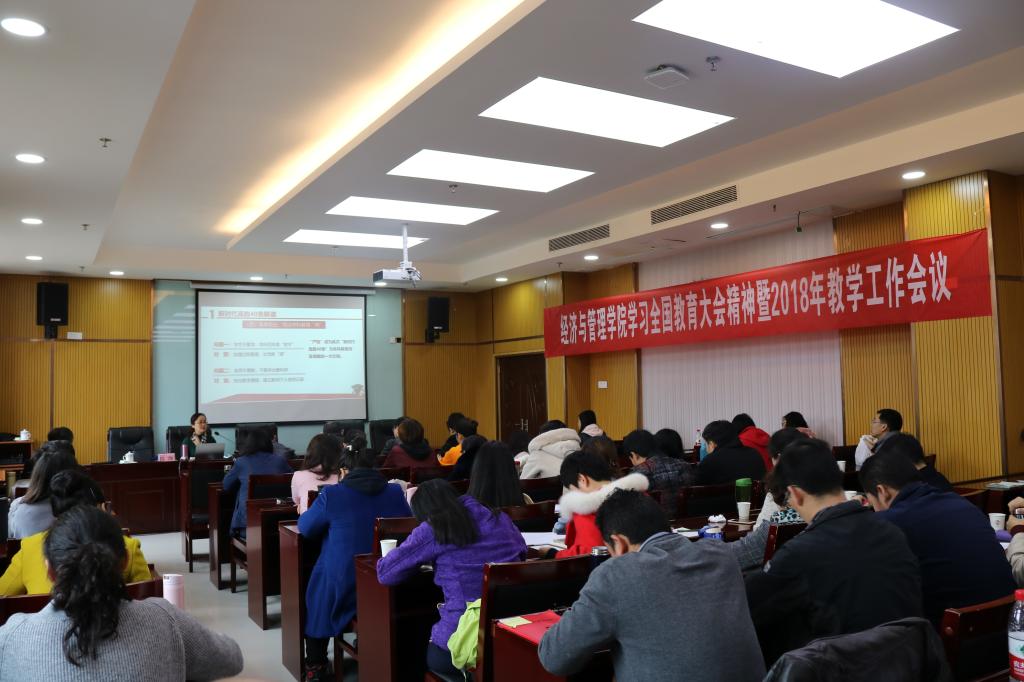 为深入学习贯彻党的十九大精神和全国教育大会精神,落实新时代“高教40条”,73882必赢网页版于12月1日在遵义师范学院学术交流中心三会议室召开学习全国教育大会精神暨2018年教学工作会议。会议由学院党委书记陈椽主持,学院全体教职工参加会议。