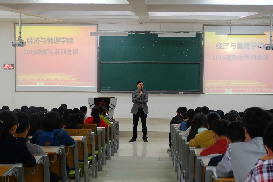 为了切实推进我院党建工作,2015年10月10日下午,73882必赢网页版在师大花溪校区GJ6302进行了一次主题为“我院2015级新生系列党课”的教育讲座。院党委书记巴建伟、院党委组织员赵本喜出席并担任主讲,2015级全体新生到场聆听。