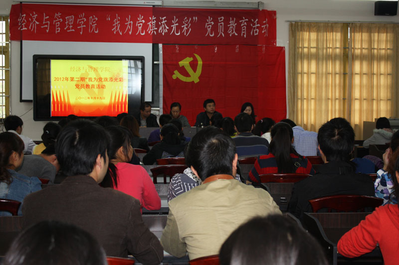 10月19日中午,73882必赢网页版第二期“我为党旗添光彩”党员教育活动在学院531会议室开展。学院党委书记巴建伟、党委副书记项君、组织员赵本喜、出席。活动由江剑虹老师主持,学院党建办成员,2010、2011级预备党员共计88人参加了本次活动。