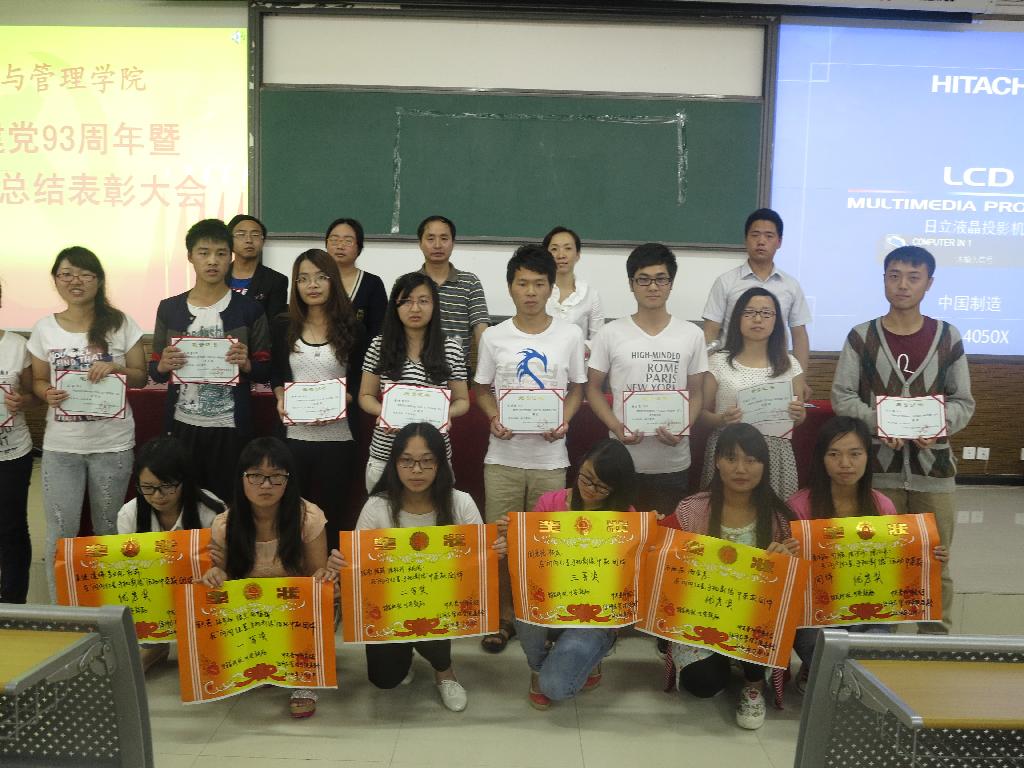 7月1日下午,73882必赢网页版在花溪校区GJ6202教室举行纪念建党九十三周年暨“七•一”总结表彰大会。学院党委副书记项君、党委组织员赵本喜、团委书记张晶晶、2012级辅导员向凯麟、2013级辅导员赵元钊出席。学院全体学生党员、入党积极分子代表200余人参加会议。会议由向凯麟主持。