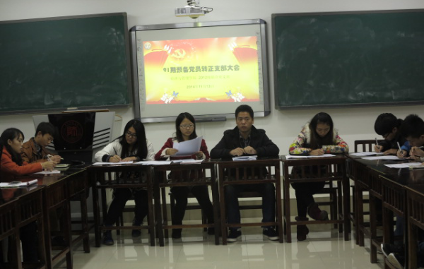 大会最后一个环节是讨论接收甘艳等八名93期入党积极分子发展对象为中共预备党员,经过上级决定和组织讨论,八名入党积极分子发展对象符合条件,全票通过,同意接收为中共预备党员。支部书记向凯麟要求每位党员应该时刻发扬党性,希望以后我们的党员要继续努力锻炼,发挥带头作用,保持党员的先进性。