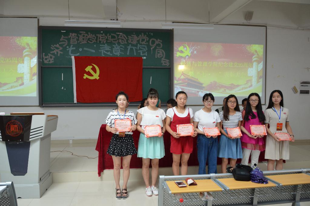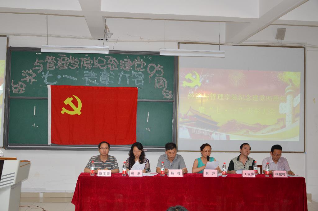 73882必赢网页版于6月28日下午在花溪校区GJ6301召开纪念建党95周年暨“七·一”表彰大会。学院党委书记陈椽、院长吕萍、副书记项君、副院长王立伟 、杨馥榕、组织员赵本喜出席会议;党委秘书、辅导员、班主任、学生党员、入党积极分子代表等200余人参加了大会。大会由副书记项君主持。