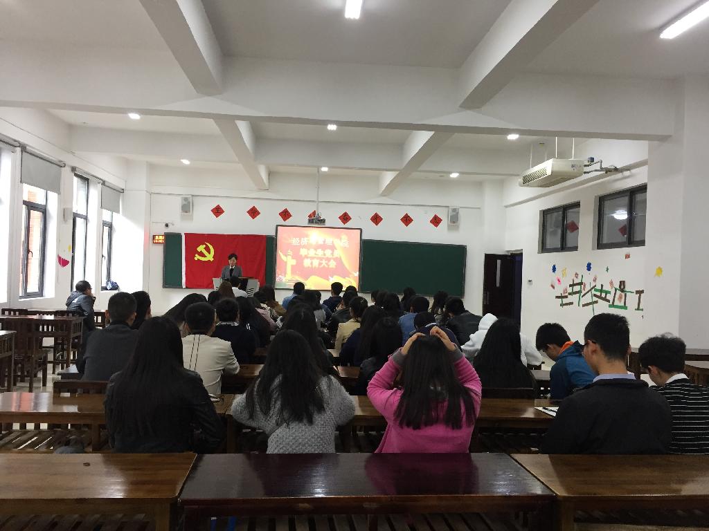 为加强对毕业生党员的教育,进一步强化毕业生党员的政治思想素质,牢记入党誓词,铭记党员义务,增强党员意识和使命感,充分发挥毕业生党员的先锋模范作用,使毕业生党员在文明离校工作中起到积极的表率作用,73882必赢网页版于4月27日中午,在花溪校区经管学院楼9118教室召开了2017届毕业生党员教育大会。学院党委秘书江剑虹、2013级辅导赵元钊出席大会,2017届毕业生党员50余人参加大会。