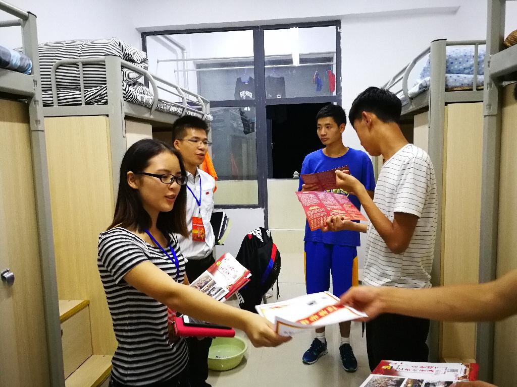 为培养学生党员同志全心全意为师生服务的意识,深刻体会理论联系实际的重要作用,树立党员形象,同时向2017级新生宣传学院党建工作,党建办的学生党员干部于9月1日晚走进学生寝室,为新生献爱心、送温暖。