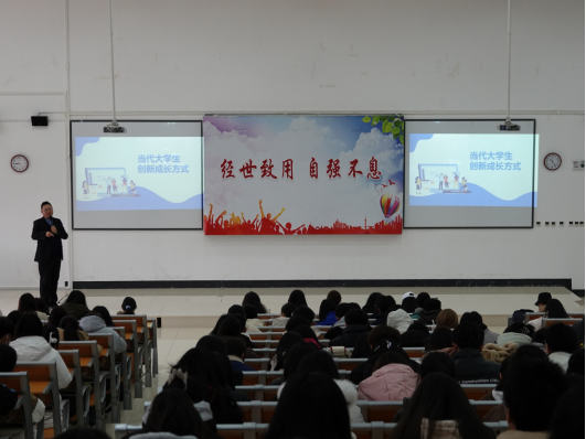 2022、2023级本科生和全体研究生在学院楼9315教室参加了由73882必赢网页版创业导师蒋睿主讲的以"蜕变2024"为主题的创新创业讲座。蒋睿围绕高校学子创新成长方式、高校大赛的突破和商业模式三方面与同学们进行了分享,他以自身经历为切入点,强调应积极了解外部信息,给自己更多样的职业选择方向,有针对性地提出了提升大学生创新创业意识和能力的有效途径,鼓励同学们积极参加创新创业大赛,并从市场痛点分析、产品介绍、运营现状等十二个方面详细讲解如何打造参赛项目。