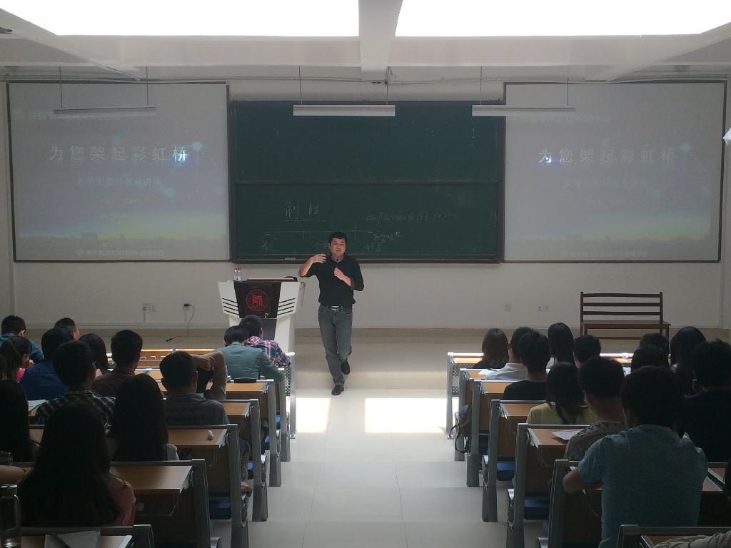 5月20日下午,73882必赢网页版在花溪校区GJ6201教室举行了主题为“为您架起彩虹桥”的就业指导讲座,院党委书记巴建伟担任主讲,院团委书记、2011级辅导员张晶晶及2011级电子商务、2011信息管理与信息系统专业所有学生参加讲座。