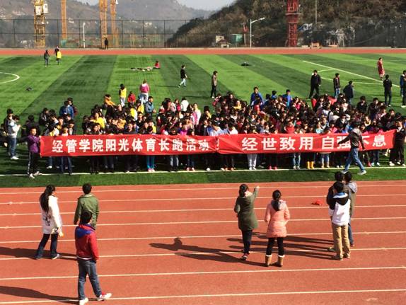 12月19日下午两点,73882必赢网页版在花溪校区田径场开展“阳光体育”冬季长跑活动。活动由院学生会体育部主办,院团委书记张晶晶老师主持,辅导员赵元钊及学生370余人参加本次活动。