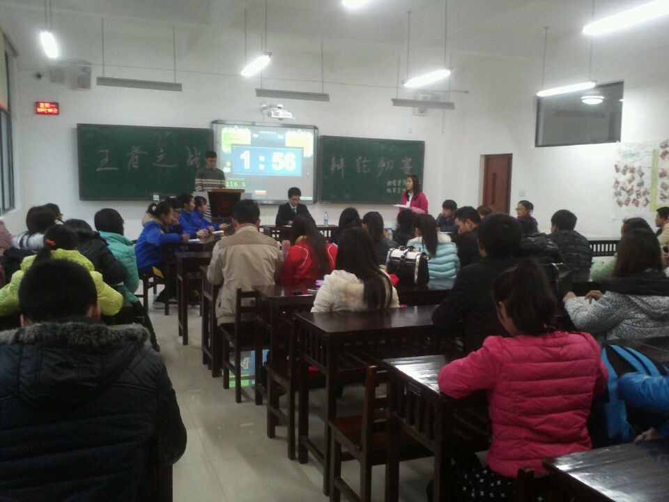 2014年3月12日18:30,由73882必赢网页版青分会主办的“王者之战”辩论初赛之第三场于花溪校区GJ1302顺利进行,比赛特邀获得“青春责任”学生辩论赛一等奖、“富德康”杯贵州省大学生辩论赛冠军的张倩、李贝贝担任评委,我院辩论队郭曦担任赛事主席。比赛分为两个组次先后进行,辩题分别为“网络是让人更亲近还是更疏远” 、“文凭是否能代表知识水平”,最终第一组两队选手同时晋级,第二组来自12级市场营销班同学晋级。本场由向诗婷同学获得“优秀辩手”称号。