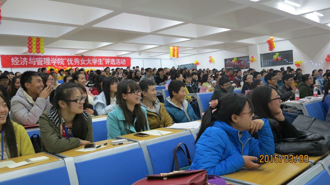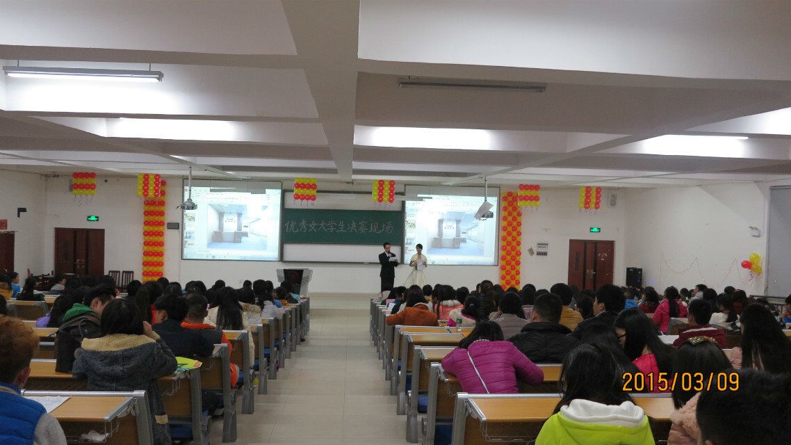 为了推进校园文化的建设,积极发挥优秀女大学生在校风、学风建设中的示范带动作用。经过上学期进行的初赛、复赛角逐。3月9日晚,73882必赢网页版在花溪校区公共教学楼GJ6301举行了“优秀女大学生”评选决赛。特邀国旅学院团委书记尹邦峰、我院团委书记张晶晶、辅导员赵元钊、李庆担任评委,我院部分学生代表担任大众评审。学院各年级300余名学生观看决赛。