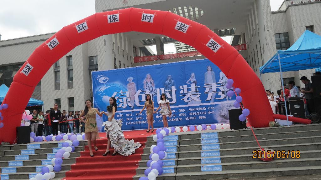 为了增强大学生的环保意识、开发大学生的动手能力和设计能力,2015年5月24日至6月8日,73882必赢网页版8个学院共同携手举办了一次主题为“绿色环保”的模特时装大赛,呼吁全校师生共同参与到环保的队伍当中。