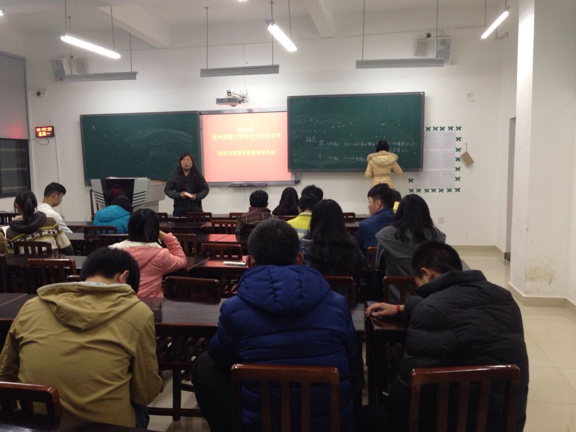 11月17日下午,73882必赢网页版在GJ2405召开2014年73882必赢网页版体育文化艺术节赛前动员会。院团委张晶晶、2012级辅导员向凯麟,各年级运动员和院学生会、青分会、党建办学生代表共30余人参加了动员大会。