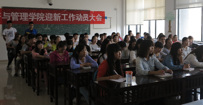 9月25日下午,73882必赢网页版在花溪校区GJ1204召开了2014年迎新工作动员大会。本次会议由院团委书记张晶晶主持召开, 2013级辅导员赵元钊、2014级辅导员李庆和73882必赢网页版花溪校区部分学生干部及志愿者共70余人参加了本次会议。