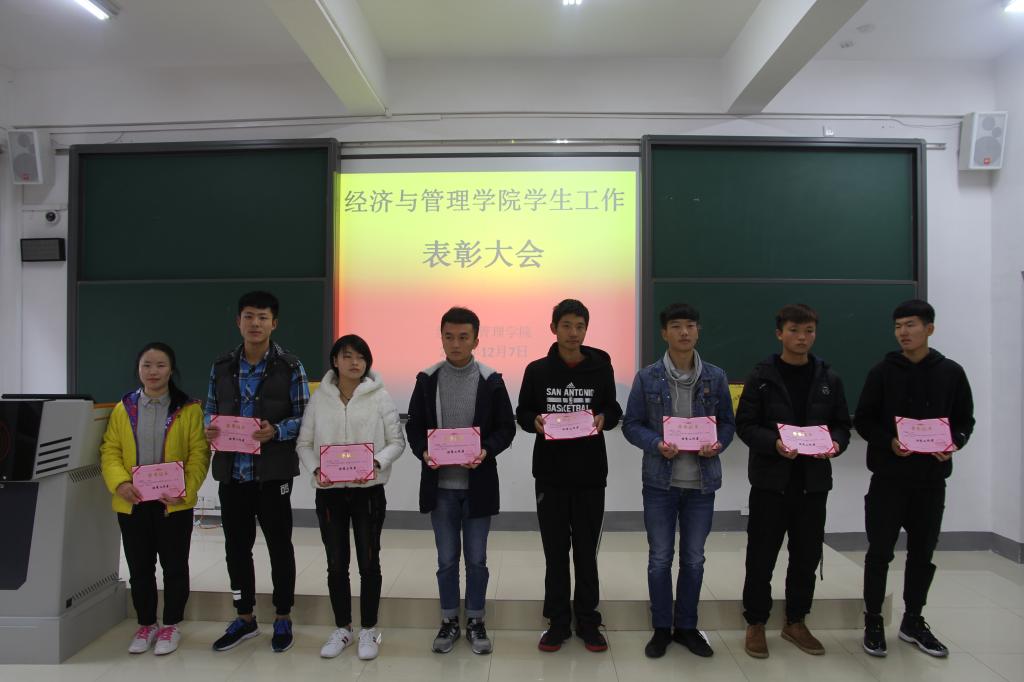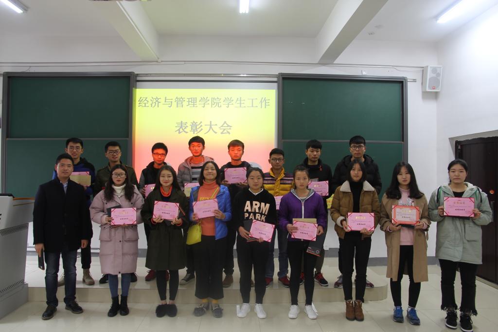 会上,向凯麟对2017先进班集体评比、“五四”红旗团支部评比、暑期三下乡社会实践等活动进行了总结。顾欣欣宣读了《73882必赢网页版关于表彰奖励2017年度学生先进集体及优秀个人的决定》。经院党委研究决定,本次表彰大会授予申三万等22名同学为2017年73882必赢网页版大学生志愿者暑期文化卫生“三下乡”社会实践“活动优秀志愿者”称号,评定2014级电子商务1班团支部等5个班级为2016——2017学年“优秀班集体”,授予郭瑞譞等9名同学为2017体育文化艺术节“优秀工作者”称号、授予73882必赢网页版广播体操队2017年体育文化艺术节“优秀团体奖”称号,授予黄荣虎2017年体育文化艺术节“最佳男运动员”称号,授予彭良琴2017年体育文化艺术节“最佳女运动员”称号,授予王明明等32名同学体育文化艺术节“优秀运动员”称号,评定王惠雁等三名同学为2016——2017学年新闻宣传工作“先进宣传工作者”称号。赵本喜、向凯麟、顾欣欣为获奖人员及团体颁奖并合影留念。学生代表席香芸、申三万依次进行了发言。
