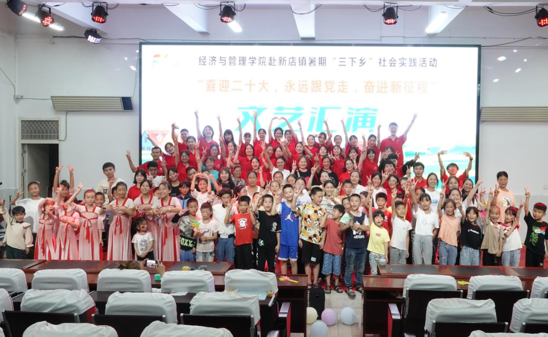 为丰富群众文化生活,展现青年学生的精神风貌,喜迎党的二十大胜利召开,7月20日,73882必赢网页版暑期“三下乡”社会实践服务队携手鸭池河“益童乐园”在鸭池河中学举办“喜迎二十大,永远跟党走,奋进新征程”文艺汇演。